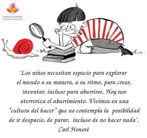 «Pero los niños necesitan tener tiempo para ‘no hacer nada’, tiempo para imaginar y perseguir sus propios procesos de pensamiento o asimilar sus experiencias a través del juego o simplemente observar el mundo que les rodea».