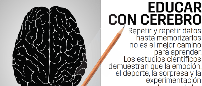 Repetir y repetir datos hasta memorizarlos no es el mejor camino para aprender. Los estudios científicos demuestran que la emoción, el deporte, la sorpresa y la experimentación son algunos de los ingredientes necesarios para sumar conocimiento. ¿Recuerdas cuando ibas a la escuela y en algunas asignaturas te hacían aprender de memoria decenas de datos? Que si fórmu- las … Continúa leyendo Educar con Cerebro